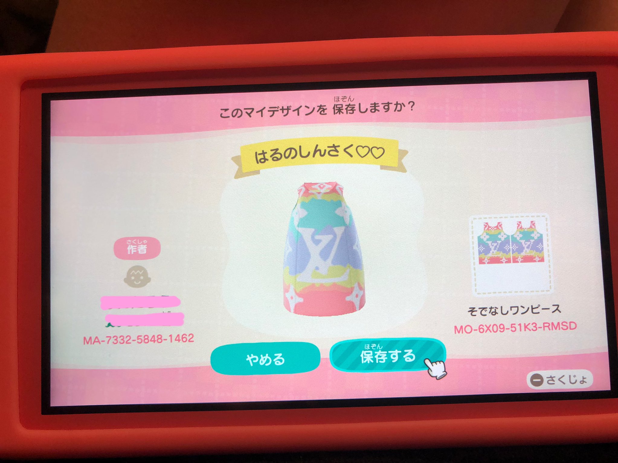 「あつまれどうぶつの森」のマイデザイン。